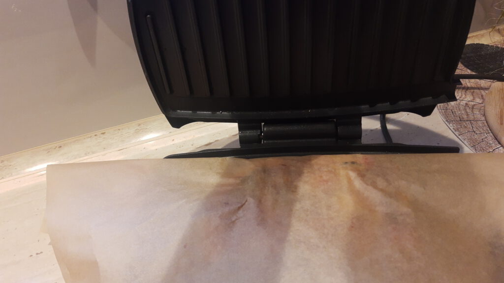 Co robimy dalej – wystarczy przygotować kanapki i do dzieła. Do opiekacza wkładamy papier do pieczenia na niego kładziemy przygotowane wcześniej kanapki, przykrywamy kolejną warstwą papieru do pieczenia i gotowe. Zamykamy nasz opiekacz i czekamy, czekamy, czekamy…